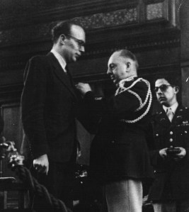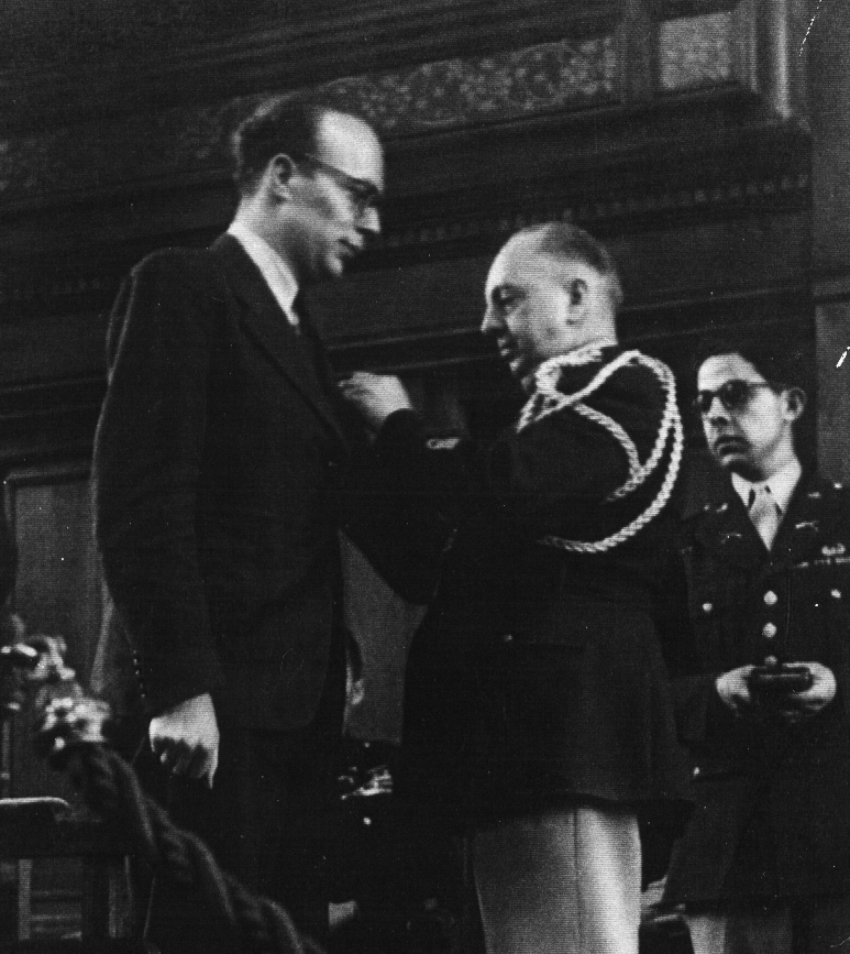 EUGENE VAN DER HEYDEN, subject of the Netherlands, for service in the cause of freedom from March 1943 to January 1944, while aiding Allied airmen shot down over enemy-occupied territory. EUGENE VAN DER HEYDEN, in his self-chosen mission, inspired his compatriots by his fearless leadership and devotion of purpose while assuring the successful escape of twenty-two Allied airmen from the enemy. His heroism and his determination were of inestimable aid in the prosecution of the war and his magnificent contribution to the cause of Freedom merits the esteem and gratitude of the United Nations.