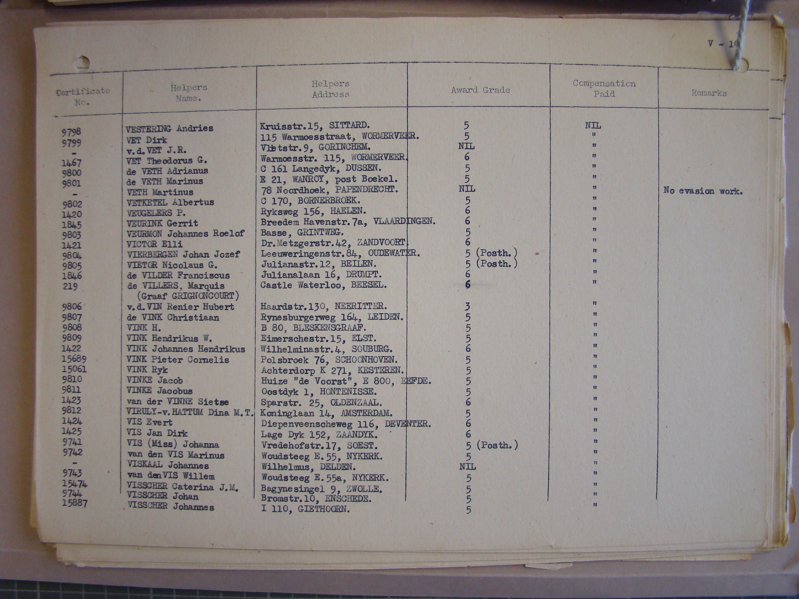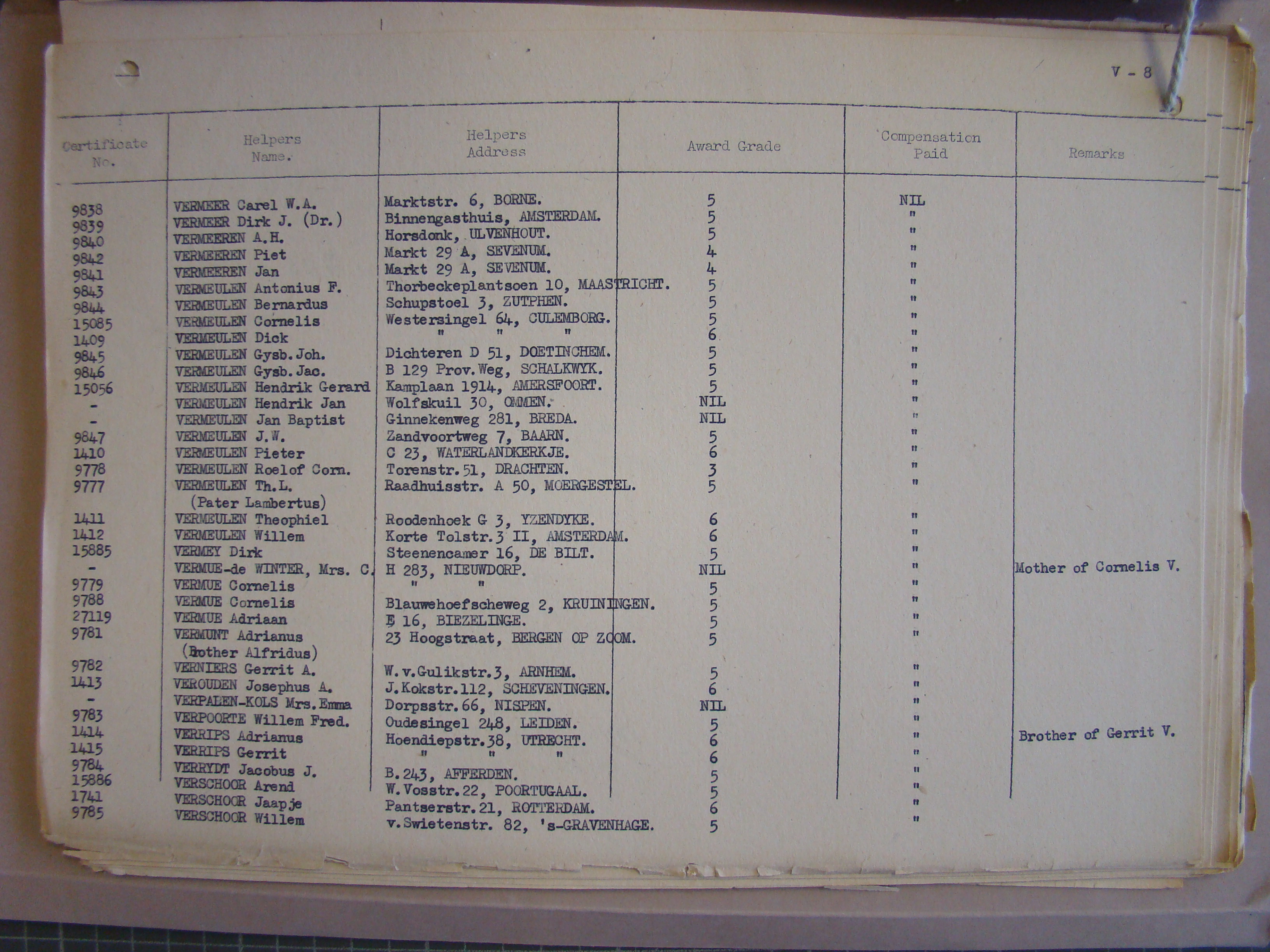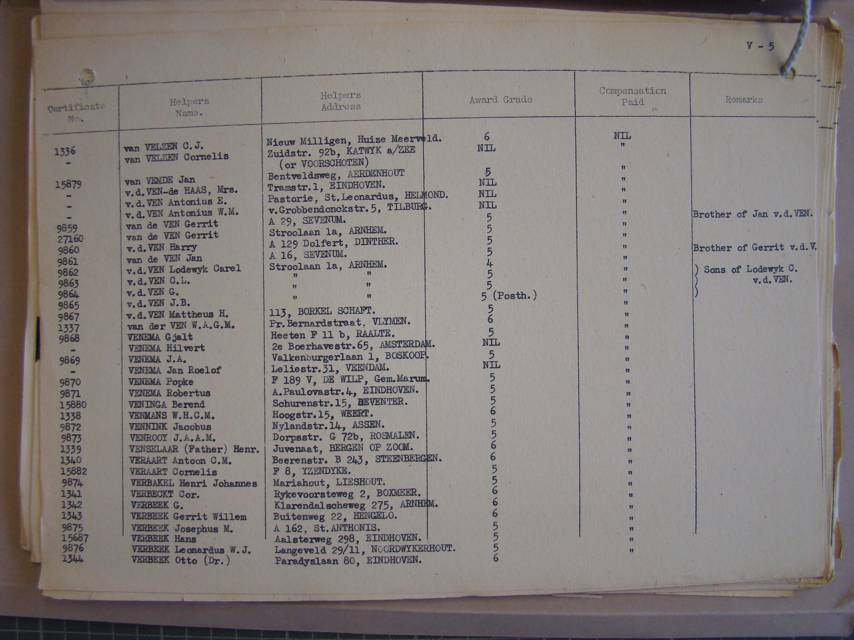 Pg. V5, VELZEN to VERBEEK