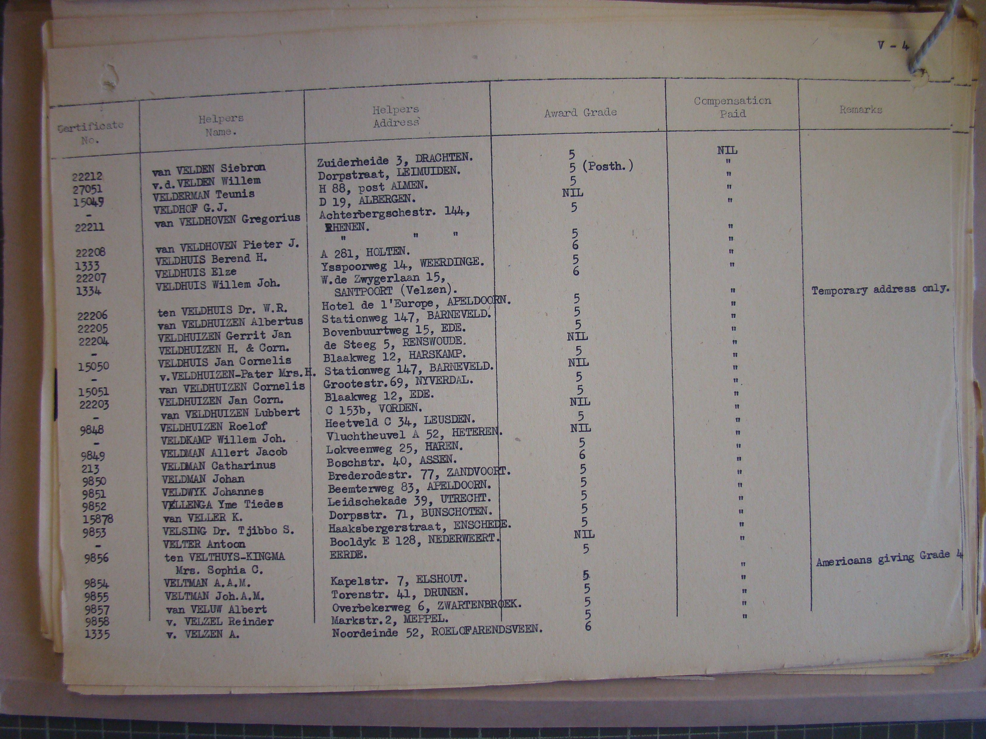 Pg. V4, VELDEN to VELZEN