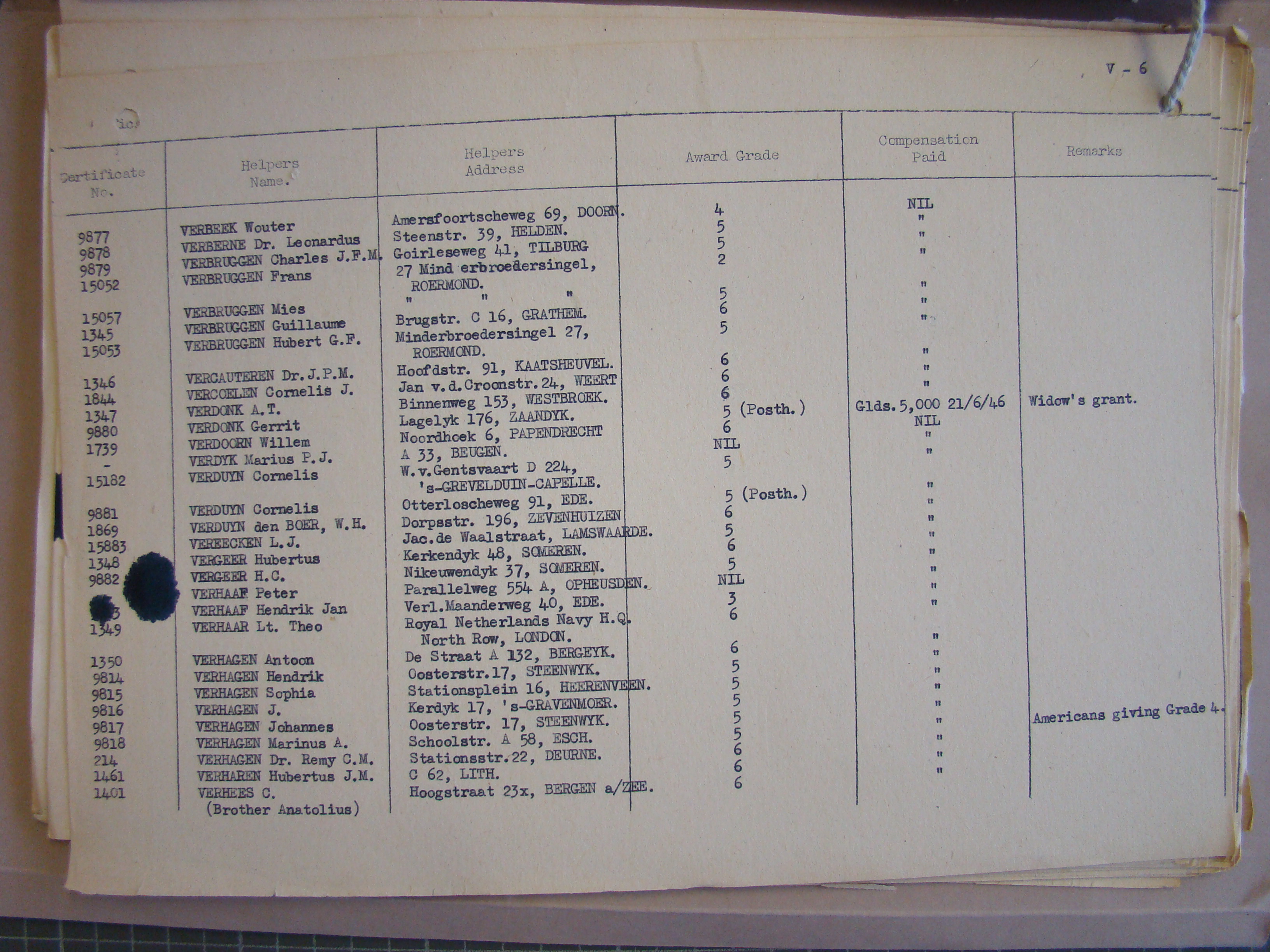Pg. V6, VERBEEK to VERHEES