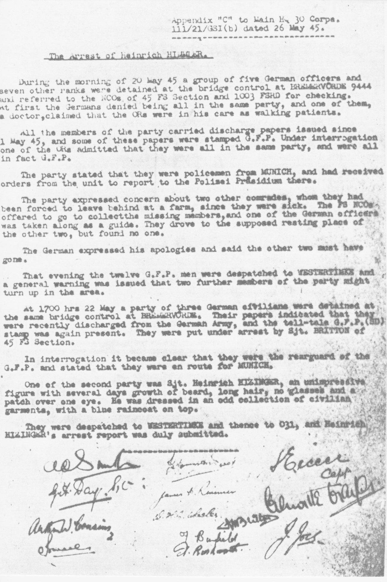 Appendix to Himmler Arrest Report