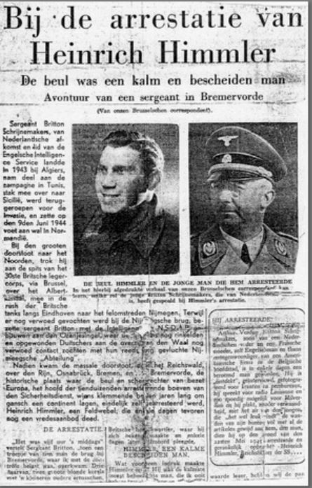Newspaper story about Britton’s arrest of Himmler, with more contrast and snipped